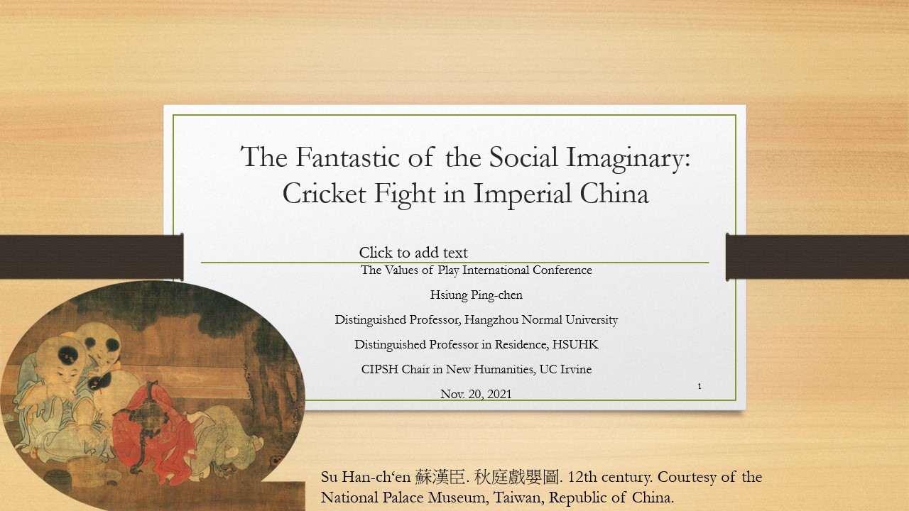 The third speaker was Prof. Hsiung Pingchen, Secretary-General of CIPSH and Distinguished Professor of Jinghengyi Education College of HZNU. Her speech topic was "The Fantastic of the Social Imaginary: Cricket Fight in Imperial China". She pointed, Chinese people’s fascination and encounter with the crickets since antiquity to the present day presents a curious case of the ever importance of entertainment and the undeniable element of fantasy at work in the everyday as social Imaginary. Retelling this story may add historical depth and cross -cultural reflection, as the world now continues to argue on the role of social life in face of quarantine, masking and distancing during the pandemic.