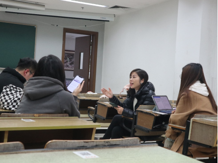 受疫情影响,下沙校区的志愿者们未能到达培训的现场。考虑到本次培训的参与人数,郑虹老师采用了小组讨论的模式和志愿者们进行交流。郑虹老师首先对志愿者们的PPT进行了点评,并提出了改进意见。之后,志愿者们向老师讲述了宣讲思路,聆听了老师的指导意见,对课堂内容结构、时间安排以及师生互动进行了优化调整。