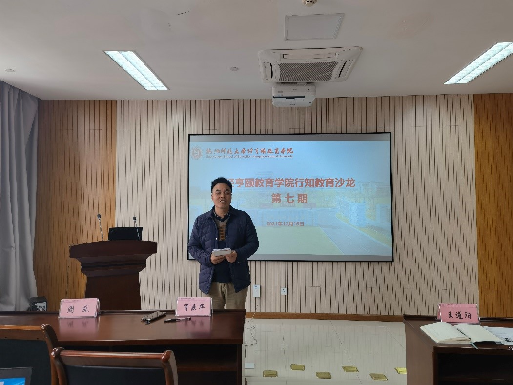 2021年12月15日下午,天英足球即时比分 行知教育沙龙活动第七讲于诚园5-406顺利举行。本次活动由肖庆华教授担任主持人,周瓦副教授、程建坤博士、韩柽炀副教授担任主讲人,王道阳副教授和吕狂飚博士担任呼应人。