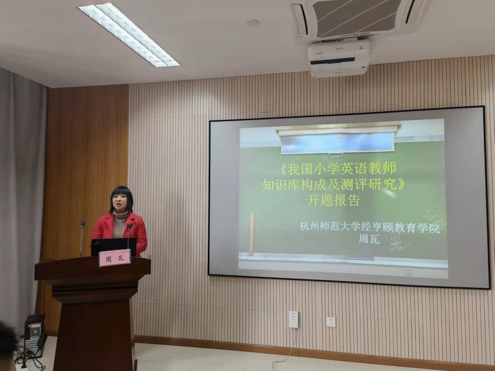 沙龙第一位主讲人是周瓦副教授,她介绍了自己主持的全国教育科学规划一般课题《我国小学英语教师知识库构成及测评研究》开题报告,她首先介绍了核心素养对小学英语教师专业知识发展的新诉求,小学英语教师要求具有语言、情感、思维能力,周老师结合自己的工作体验,提出基础英语教育中思维能力培养存在问题。基于对已有研究文献的梳理与总结,提出构建关于小学英语知识库的研究目的,并进一步阐述了自己的研究策略。