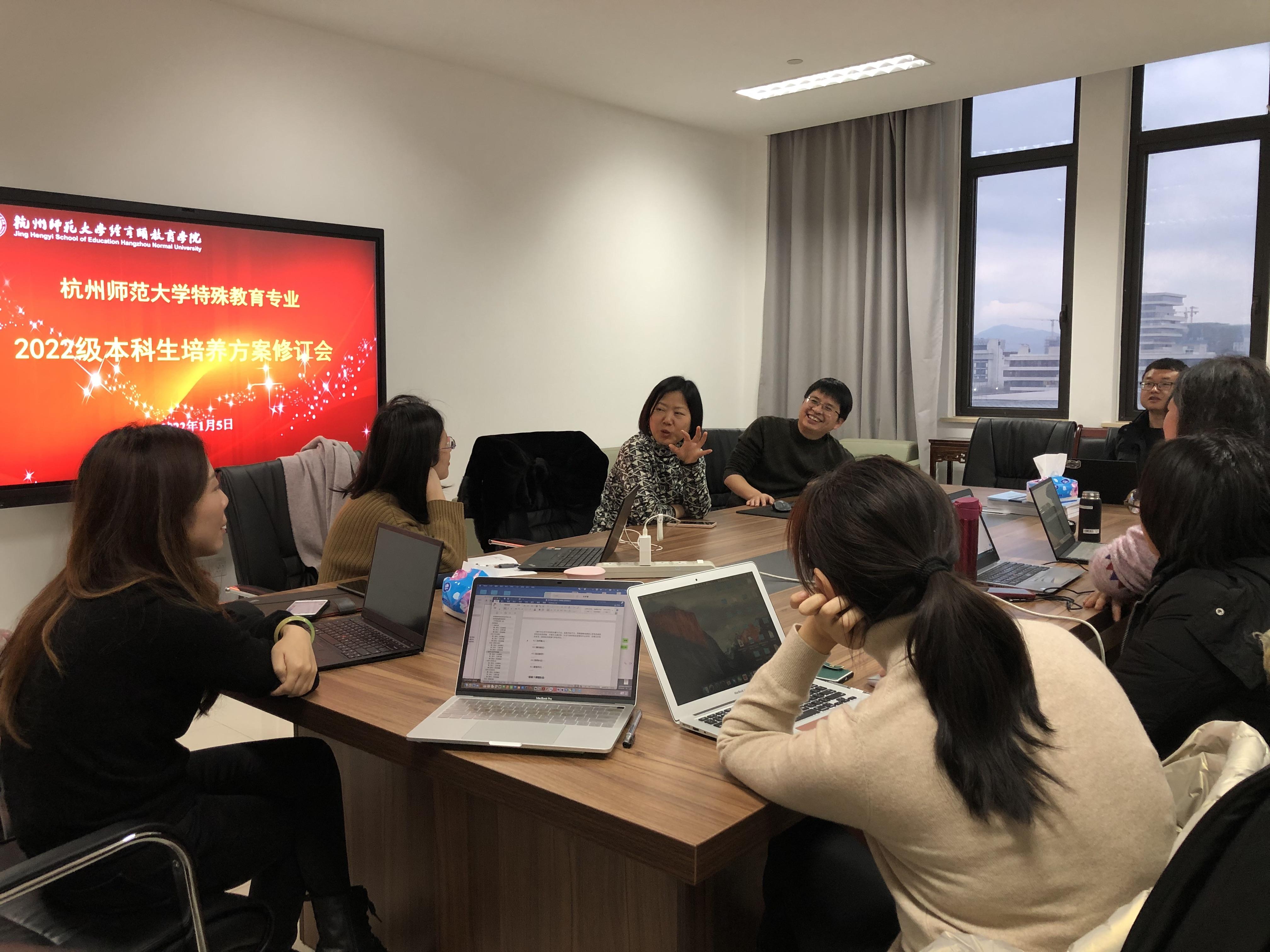 连福鑫副教授首先回顾了专业认证相关事项的目前进展,并介绍了本次培养方案修订的背景。本次研讨的培养方案主要收集了来自北京师范大学王雁教授、华东师范大学刘春玲教授、北京联合大学刘全礼教授、杭州市杨凌子学校俞林亚校长、杭州市湖墅学校卻玲亚校长、温州市特殊教育学校李科校长等专家学者的意见与建议。结合本专业的办学现状及特色,马伟娜教授和与会教师针对专家学者提出的意见和建议进行了深入讨论,进一步明确了本专业的培养目标(即“精特教、懂融合、知康复”),细化了毕业要求的具体内容,厘清了培养目标与毕业要求的对应关系,并根据上述内容完善了相关专业课程的设置方案、毕业要求与课程体系的对应矩阵。会议上,与会教师还对专业认证准备工作中遇到的各项问题进行充分讨论,并表示会各司其职,扎实推进专业认证工作。