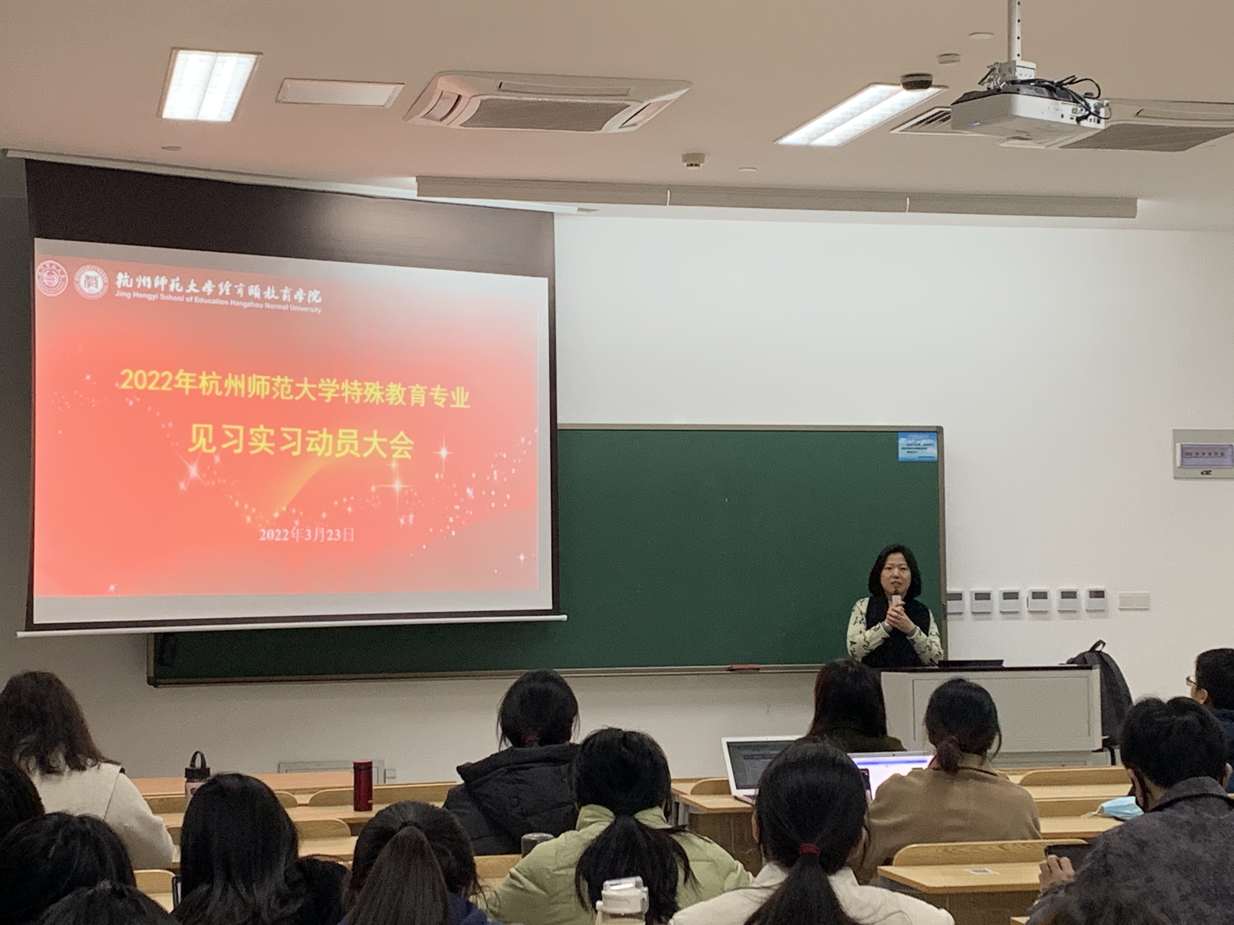 为了让同学们明确见习实习的目的及要求,3月23日下午心理学系特教专业于诚园4-317室举行2022年见习实习动员大会。此次动员大会依照疫情防控要求采用线上和线下相结合的方式开展,会议由心理学系特教部副主任连福鑫老师主持,2019级、2020级与2021级特殊教育专业全体学生、特殊教育专业负责人马伟娜教授、杭州紫荆花学青年教师张欣及见实习带队指导教师参加了此次会议。