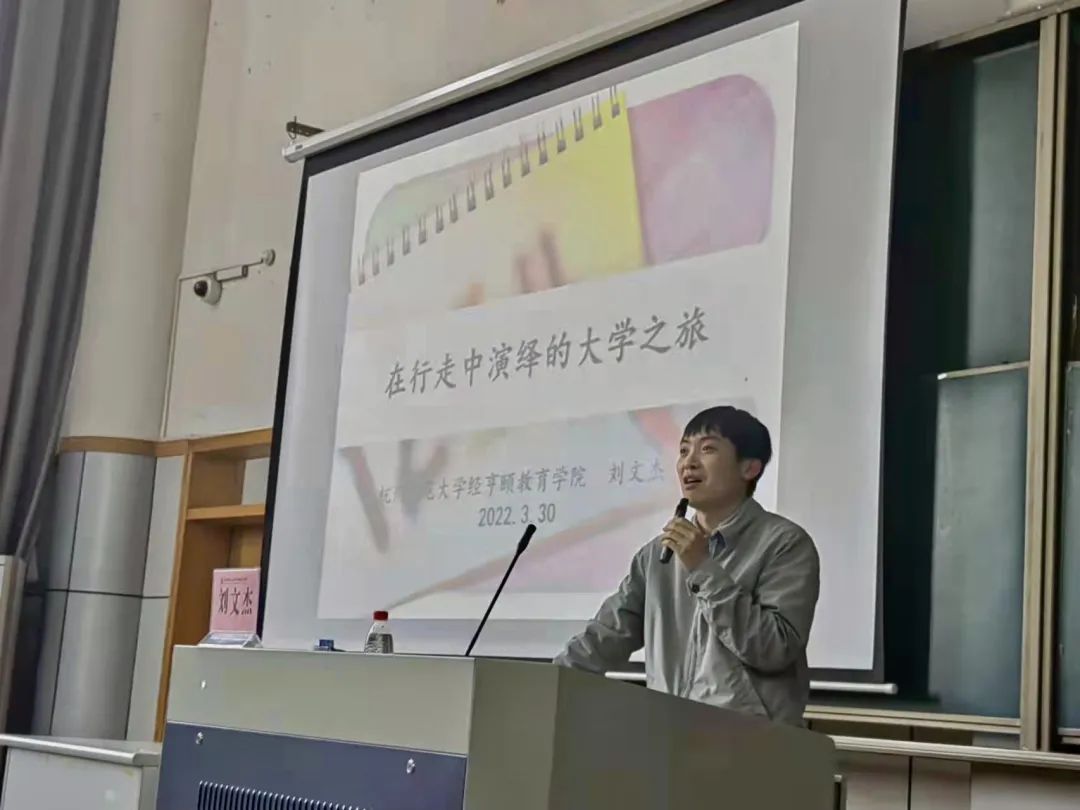 刘文杰老师从“认识大学生活”“规划大学生活”和“个人心得体会”三个方面,结合当下自己的亲身经历与大学生的学业生活现状,给予同学们大学生活和就业方向的指导。