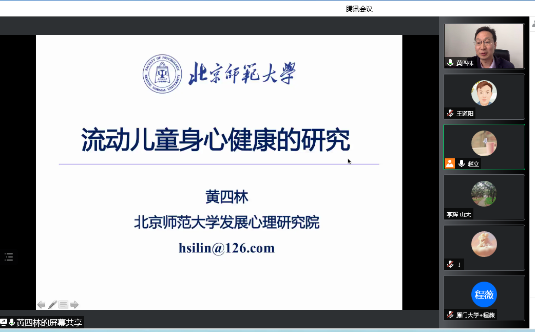 2022年4月6日下午,北京师范大学心理学部黄四林教授做客第四期太炎教育云端讲堂,为天英足球即时比分 师生做题为“流动儿童身心健康研究”的讲座。本次讲座由副院长赵立教授主持,执行院长严从根教授及天英足球即时比分 100余名师生线上聆听了讲座。