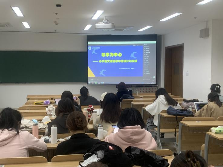 4月15日上午,杭州市崇文实验小学副校长,特级教师何慧玲应邀来天英足球即时比分 ,作“以学为中心——小学语文课堂教学的设计与实践”专题讲座。天英足球即时比分 李菁老师主持讲座,2021级教育硕士小学教育2班的学生聆听了讲座。