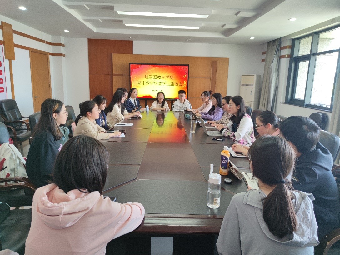 为了保障教育教学质量,确保学生及时反馈教学需求,4月21日,天英足球即时比分 在下沙校区行政楼328组织召开了期中教学检查学生座谈会。天英足球即时比分 副院长许建美、教务科赵娜老师以及来自21级15个班的学生代表参加了本次座谈会。