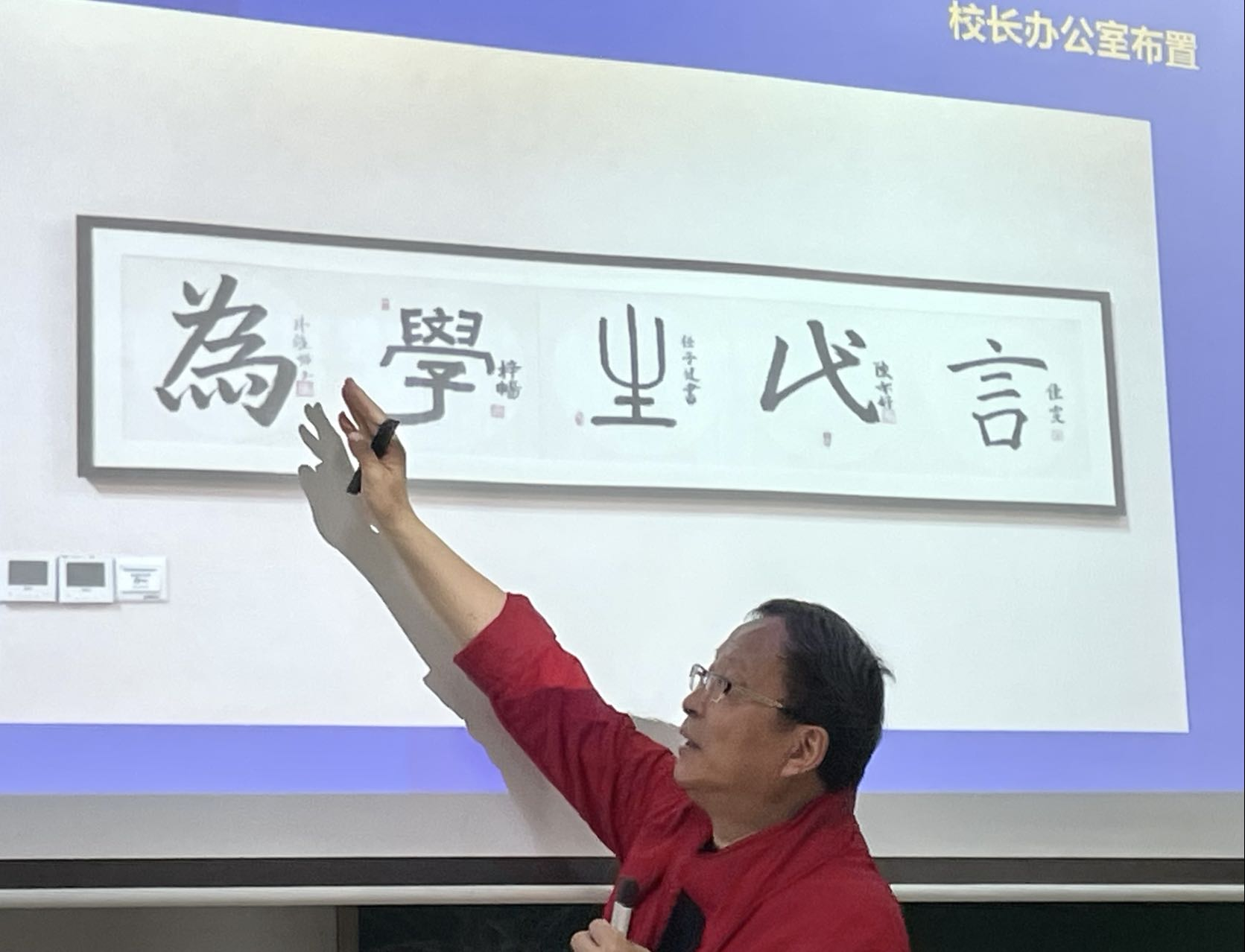 讲座伊始,马骉老师以“听课位置前后之争”话题引入讲座主题,提出要坚持教育的根本立场——儿童立场,即站在儿童角度思考与实施语文教育,让学生成为有志、有力、有智、有趣的合格世界公民。从“儿童立场” 出发办教育,不仅仅是一句口号,马骉老师躬行实践,如把学校楼名、路名的命名权交给学生,真正做到“为学生代言”。