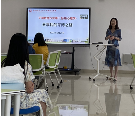 2022年5月25日下午13:00,心理学系在诚园6-702团体辅导室成功举办了子渊教育沙龙(心理学专场)第十五讲。本次沙龙主题是“分享我的考博之路”,考取博士的2019级心理学研究生吴心玥、陈芬芳、郑锦彬、蓝志辉、刘星辰、谢肖蔚、陈丽等7位同学、导师傅根跃、胡治国、薛绍伟、臧学莲、甄瑞以及一二年级同学线上线下50多名同学参加沙龙。沙龙由赵立副院长和王道阳老师共同主持。