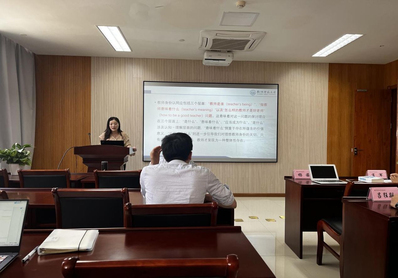 沙龙第一位主讲人是杨茜博士,她介绍了自己的研究成果“社会转型期的教师身份认同:‘小我’与‘大我’的互动共生”。杨老师从时代背景和政策背景出发,基于“教师是谁”“做教师意味着什么”“怎么样的教师才是好老师”三个层面的思考提出教师身份认同这一问题。接着,杨老师分四个部分呈现了自己的研究内容。第一部分是研究过程的介绍,在这一部分杨老师首先详细阐述了研究所采用的跨案例分析方法,并指出选取了“对中国学校教育的叙事探究:校长的三个形象”“培养教师/校长的最爱自我:基于中国在线教师社群的叙事探究”以及“在实践中反思:骨干教师在学校变革经历中的个人时间知识”三个叙事案例;其次杨老师从研究对象、研究主题以及时间和空间跨度等方面说明了案例选取理由;其后在分析教师身份认同内涵的基础上,从两个维度的关系建构教师身份认同的分析框架,即外部形塑要求和内部自我统整之间的关系。第二部分是案例的详细分析,杨老师主要从“转型浪潮中的不同回应者”“职业价值实现的不同格局”“专业身份的多元理解”“传统于当代并存的师生伦理”等方面进行了阐述。第三部分是研究结论的概括,杨老师主要从“共性:‘小我’与现代社会转型的共振”“差异性:因地域与身份机遇差异而产生的身份认同”两个方面分析了教师身份认同的影响因素及其相互作用。最后,杨老师在跨案例分析教师身份认同共性和差异性的基础上进一步指出,当代中国教师身份认同中还有“小我”与“大我”实现的深层次问题,具体包括“‘小我’融入‘大我’:作为国家代理人的教师身份认同”“‘小我’成就‘大我’:多重身份牵扯下自我意识觉醒”“‘大我’与‘小我’互动共生:个体追求与职业伦理的融合”等维度。报告之后老师和同学们针对研究内容进行了热烈的讨论。