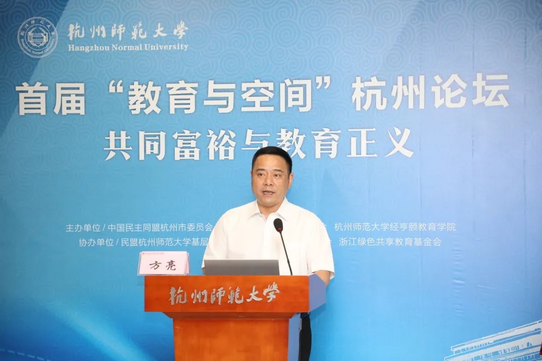 6月18日,首届“教育与空间”杭州论坛在杭师大召开,来自各地专家学者通过线下和云端相结合的方式,围绕“共同富裕与教育正义”这一主题展开交流探讨。本次论坛由中国民盟杭州市委员会、浙江省教育学会教育学分会、杭师大天英足球即时比分 主办,民盟杭州师范大学基层委员会、民盟余杭区基层委员会、浙江绿色共享教育基金会协办。