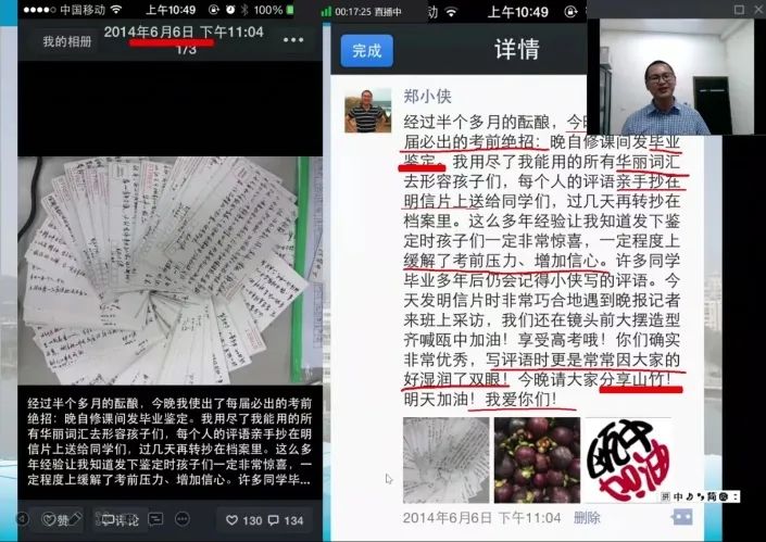 小侠老师结合自己从教23年经历,用幽默风趣的语言、详实生动的案例,向同学们介绍了幸福在教育生活中的含义。作为一名教师,幸福对于小侠老师来说就是“有爱的能力”和“付出的爱有回应”。在教书过程中,小侠老师会将自己的爱传递给学生,为每一名学生提供力所能及的帮助和关爱,比如在高考前送同学们饱含心意的手写明信片、剪掉尖角的一小板西洋参含片……在付出爱的同时,他也收获到了许多爱的回应,这是他在职业生涯中极其幸福的时刻。
