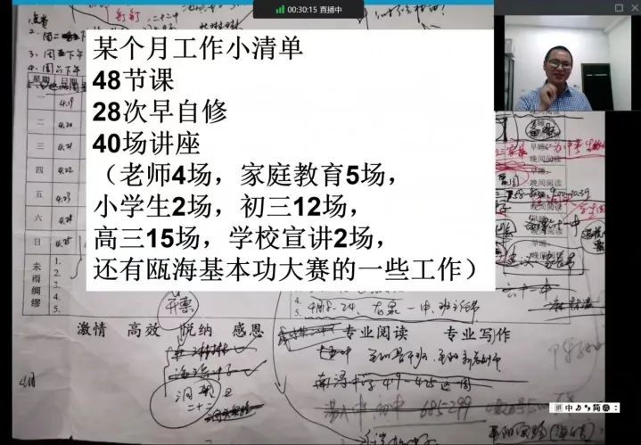 在教育生活中,做有意义的事是幸福的。小侠老师通过几张图片向同学们展示了自己有序充实的工作生活计划表,他在奔波各地为莘莘学子传经送宝的同时也兼顾好了自己的教学任务,他认为“幸福就是做有意义的事”。同时,小侠老师也分享了自己德育团队中三位老师参赛的心得体会:即使备赛途中他们舍弃牺牲了许多,但整个过程是有意义且幸福的。