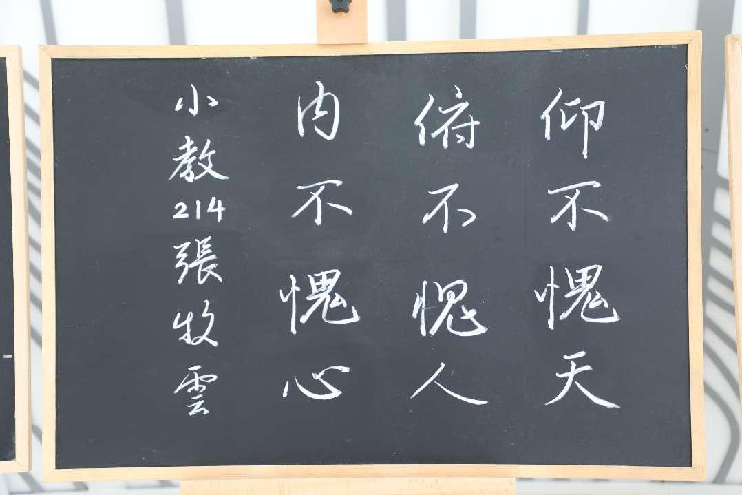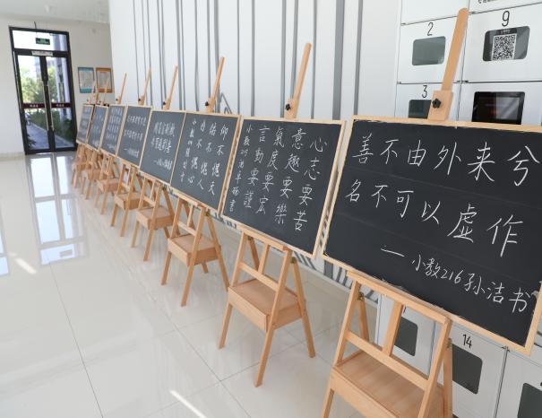 为营造廉洁自律、风清气正的良好氛围,弘扬清廉价值理念,积极开展“清廉教院”建设,学院近期组织开展“铸魂育人 廉洁从教”硬笔书写展示活动,在诚园四号教学楼大厅集中展示,20余块廉洁板书展板一字摆开,引得同学们纷纷驻足观看。同学们在黑板上书写了蕴含廉洁文化的古诗词,将廉洁文化宣传与师范生教师技能有机结合。学院也希望通过廉洁文化的氛围创设,能将清廉文化达到耳濡目染向入脑入心的转变。