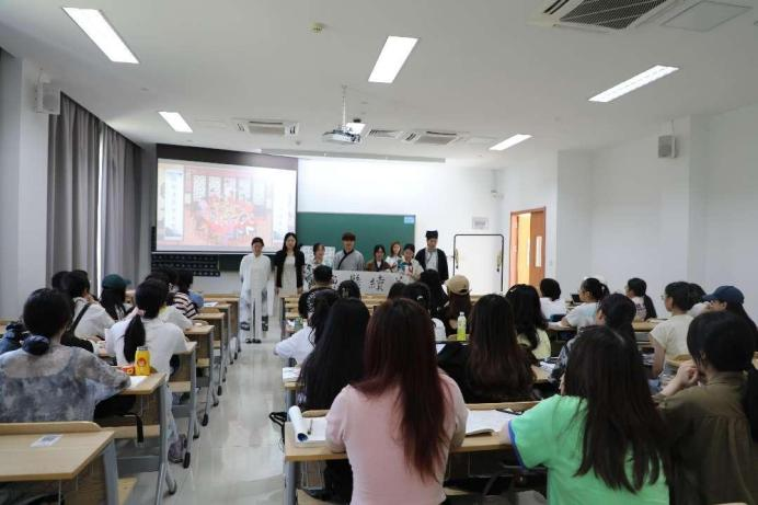 学院也积极探索廉洁文化与课程教学有机融合的廉洁教育方式,在《中国文学》课程中开展了积极的探索。近期,天英足球即时比分 梁晓凤老师在诚园4号楼109教室开展了“廉洁文化进课堂”的展示活动,课堂上学生们展示了自导自演“廉洁”主题情景剧《羊续悬鱼》,该情景剧主要讲述了后汉羊续为南阳太守时,痛恨权豪之家崇尚奢靡。时有府丞赠鱼,羊续将它挂起来,待下次府丞再送鱼时,将所挂之鱼拿出来教训他,杜绝其馈赠。后比喻为官清廉,不收馈赠。学生们通过演唱,书画等形式,把诚信、清明、正气等廉洁元素巧妙地融入“戏”中,使人仿佛时空穿越,身临其境,更加深刻的理解了中华传统文化之魂和廉洁之道。“廉洁文化进课堂”是中国文学课作为课程思政建设示范课堂的有益探索,通过有效挖掘廉洁文化元素,潜移默化地将廉洁价值观渗入学生的心灵。