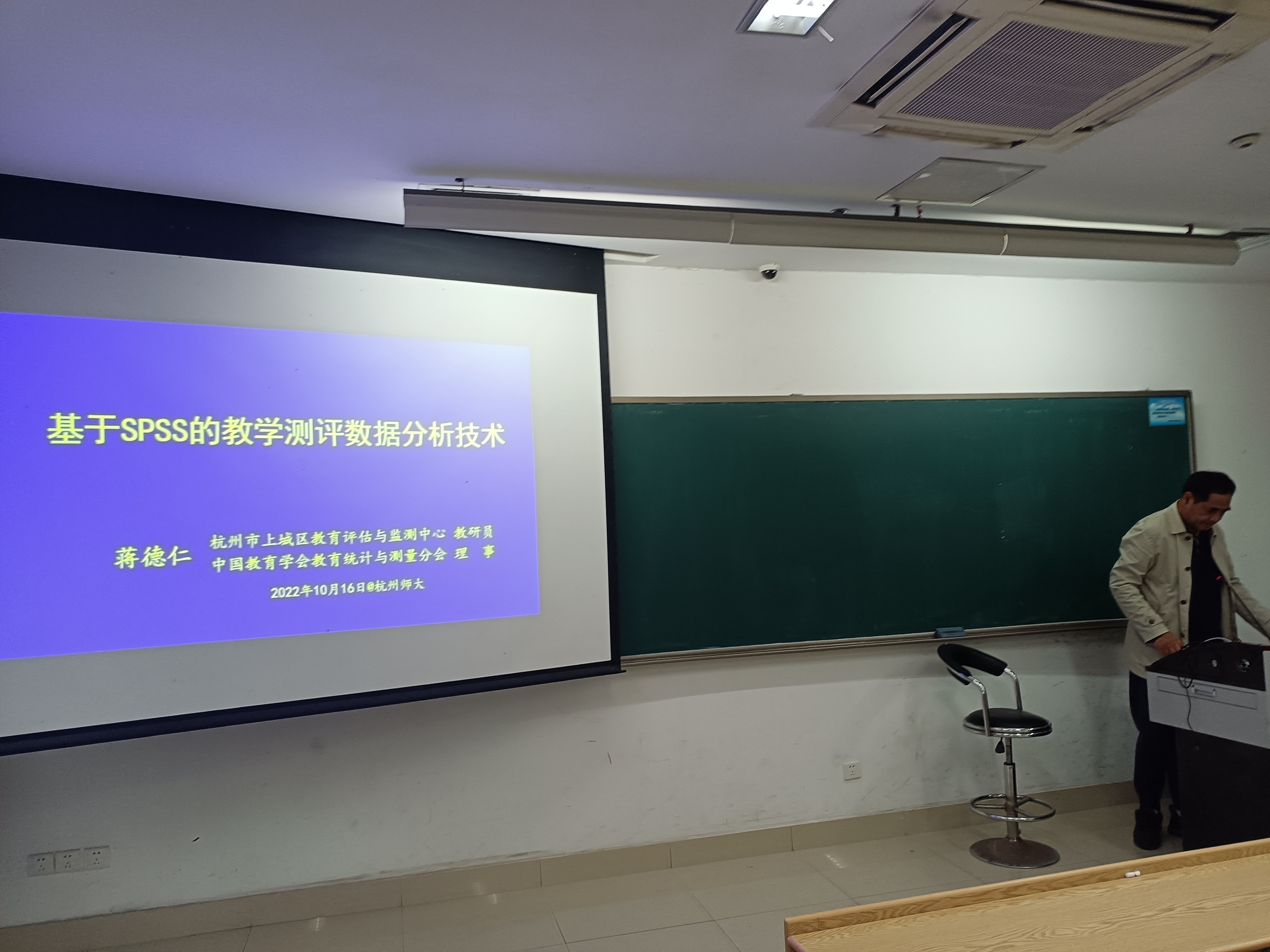 10月19日上午,为了解决研究生论文写作过程中遇到的调查问卷设计和数据分析方面的困惑和问题,我们请杭州市上城区教育评估与监测中心教研员、中国教育学会教育统计与测量分会理事、正高级教师蒋德仁老师做了“基于SPSS的教学测评数据分析技术”的专题讲座。