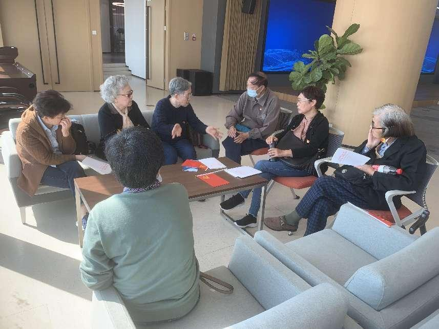 在杭州市党群服务中心的“钱塘大讲堂”,蒋书记带领大家进入学习环节,集中学习党的二十大精神,以支部为单位开展学习交流。退休党员教师们认真学习了党的二十大报告,学习领会报告的精神实质和丰富内涵,纷纷表示要把学习宣传贯彻党的二十大精神作为重要的政治任务,牢记党的初心使命,永远听党话跟党走,做一名永不褪色的共产党员,真正做到离岗不离党、退休不褪色,以实际行动拥护“两个确立”,做到“两个维护”。