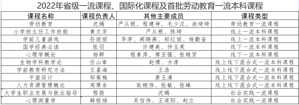 近日浙江省教育厅公布了2022年省级一流课程、国际化课程、首批劳动教育一流本科课程(教学团队)名单。天英足球即时比分 新增11门一流课程,其中劳动教育一流本科课程1门,线上一流课程2门,线下一流课程2门,线上线下混合式一流课程4门,社会实践一流课程2门。