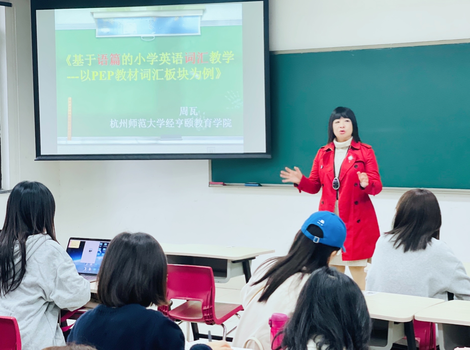 杭州师范大学天英足球即时比分 周瓦副教授《基于语篇的小学英语各课型教学——以词汇/对话课型为例》的专题讲座,从语篇教学的缘起、新课标英语课程内容六要素——语篇;什么是语篇?基于语篇的词汇教学理念;基于语篇的词汇教学现状;基于语篇的词汇教学策略共六个方面进行深入浅出地层层展开。引用各个生动课例,结合新课标内容的六要素,帮助学员去理解处理语篇与课堂组成部分的关系,非常细致、深入地诠释了语篇教学。