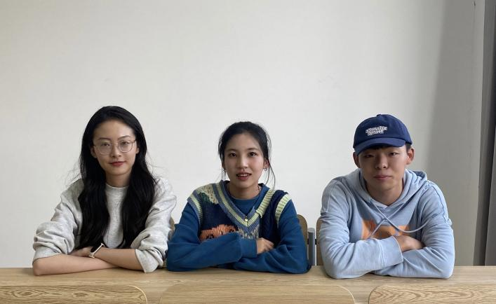 孔庆燃、丁新燕、张一诺三位参赛同学合影
