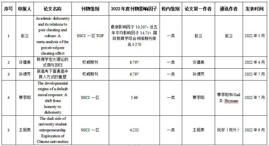 杭州师范大学2022年度优秀论文奖评选院内推荐名单公示