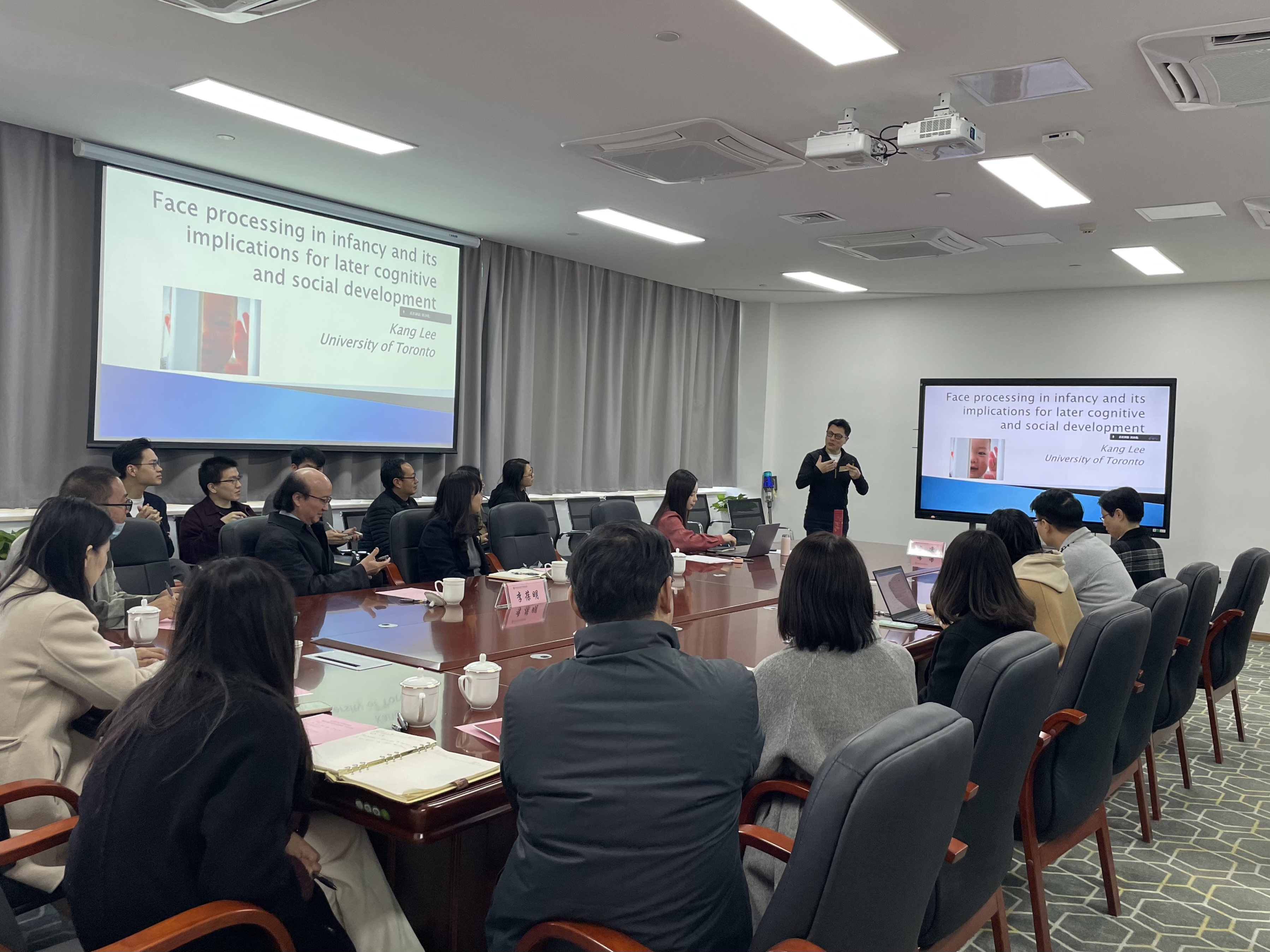 聘任仪式结束后,特别邀请加拿大多伦多大学国家一级讲席教授、著名发展心理学家李康教授做了“Face Processing in Infancy and Its Implications for Later Cognitive and Social Development”学术讲座。李康教授结合20年来关注婴儿面孔识别经验的跨文化影响,用生动的案例介绍了相关研究成果。在随后的互动问答环节,老师和同学就有关问题与李老师进行了热烈的讨论。