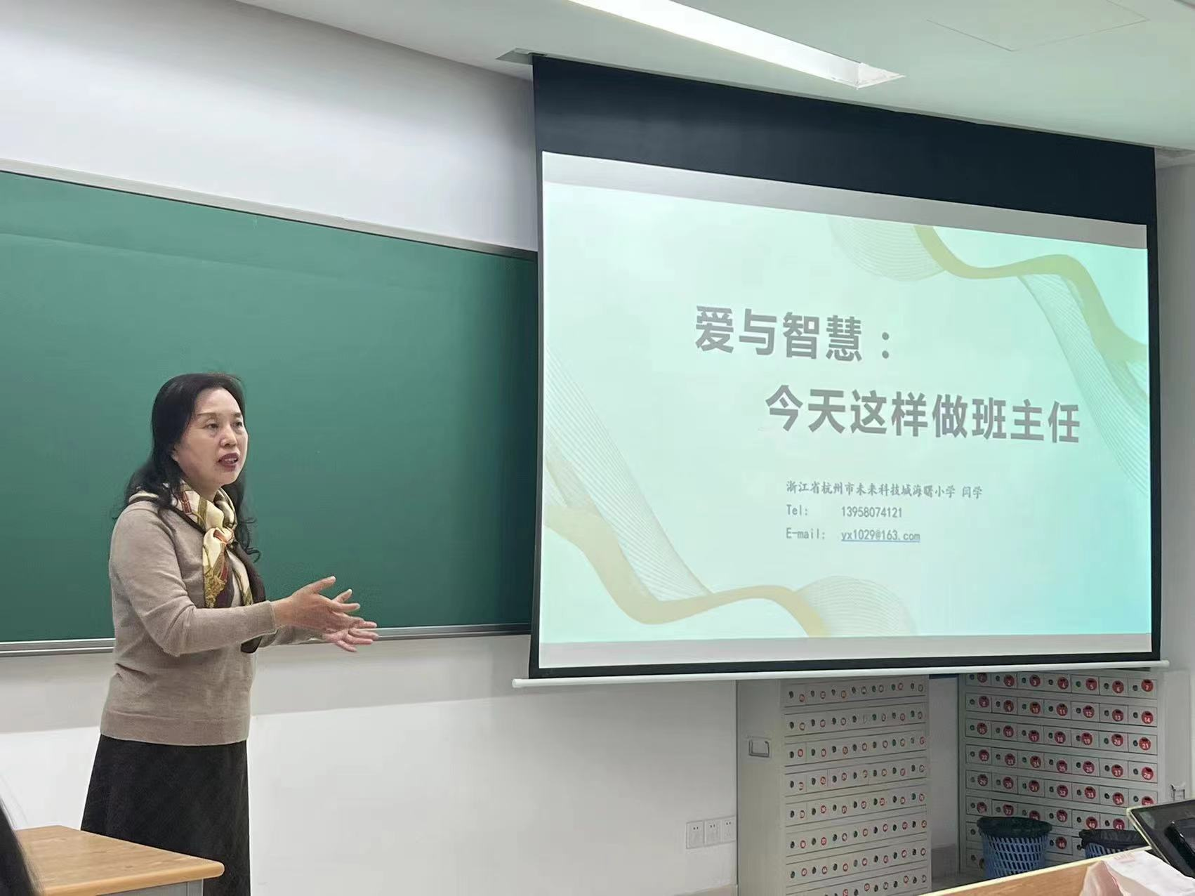 从2012年提出把“立德树人”作为教育的根本任务到2018年全国教育大会提出完善“德智体美劳”全面培养的育人体系,体现了我国对学校德育工作提出了更高的要求,为此,天英足球即时比分 专门开设了面向小学教育硕士研究生的双师课程——《德育与班级管理》。2023年3月1日上午,来自杭州未来科技城海曙小学的校长闫学老师为2022级小学教育研究生们带来了以《爱与智慧:今天这样做班主任》为主题的精彩讲座。