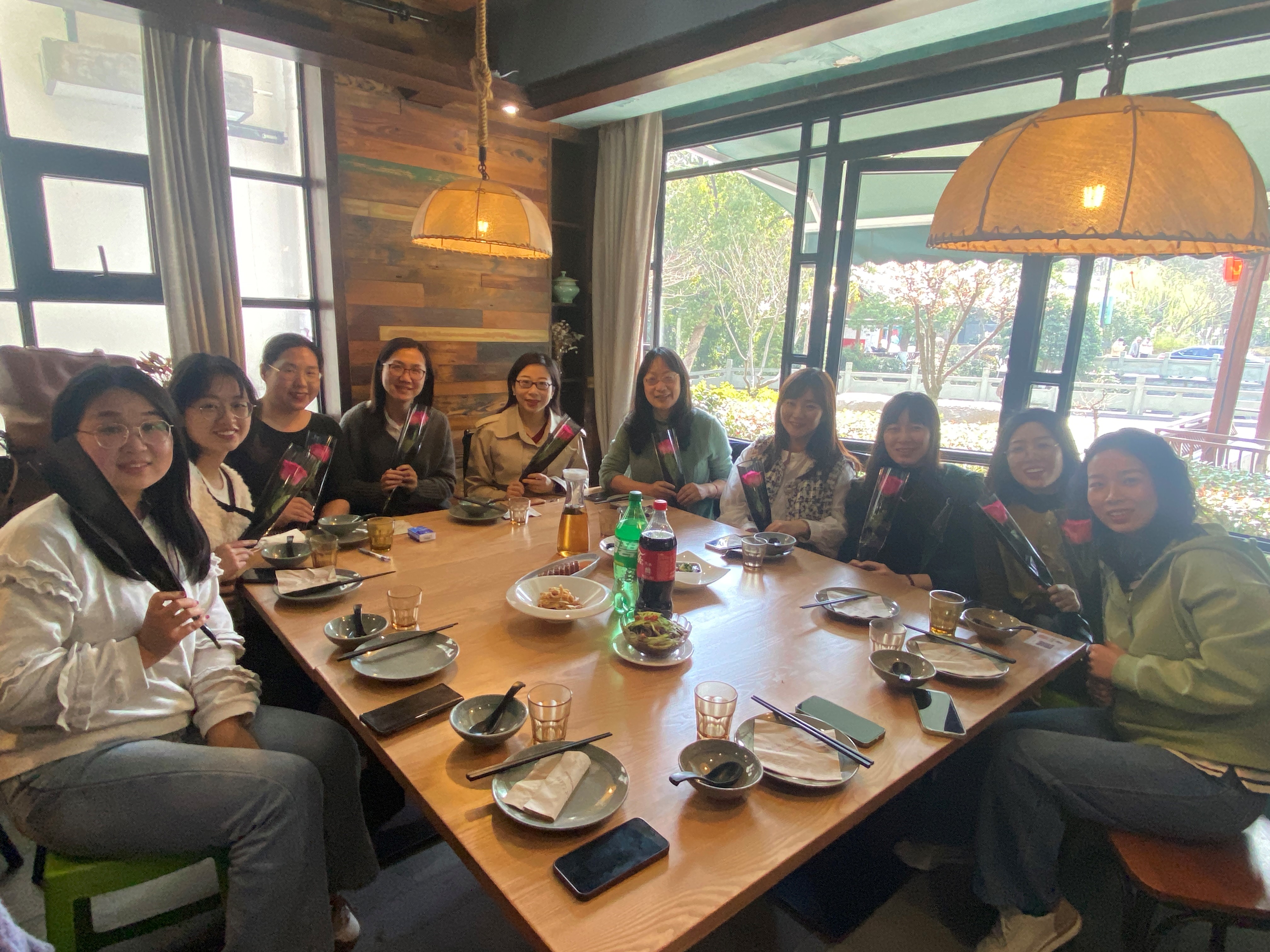 女教师们来到了青芝坞南山南餐馆,学院党委书记蒋璐敏代表学院班子,对女教师们致以节日的问候,对大家一年来的辛勤付出表示衷心的感谢,希望大家在努力工作的同时,兼顾好家庭和身体,学院会继续关心支持各位女教师。老师们相互交流工作,畅谈生活,其乐融融。