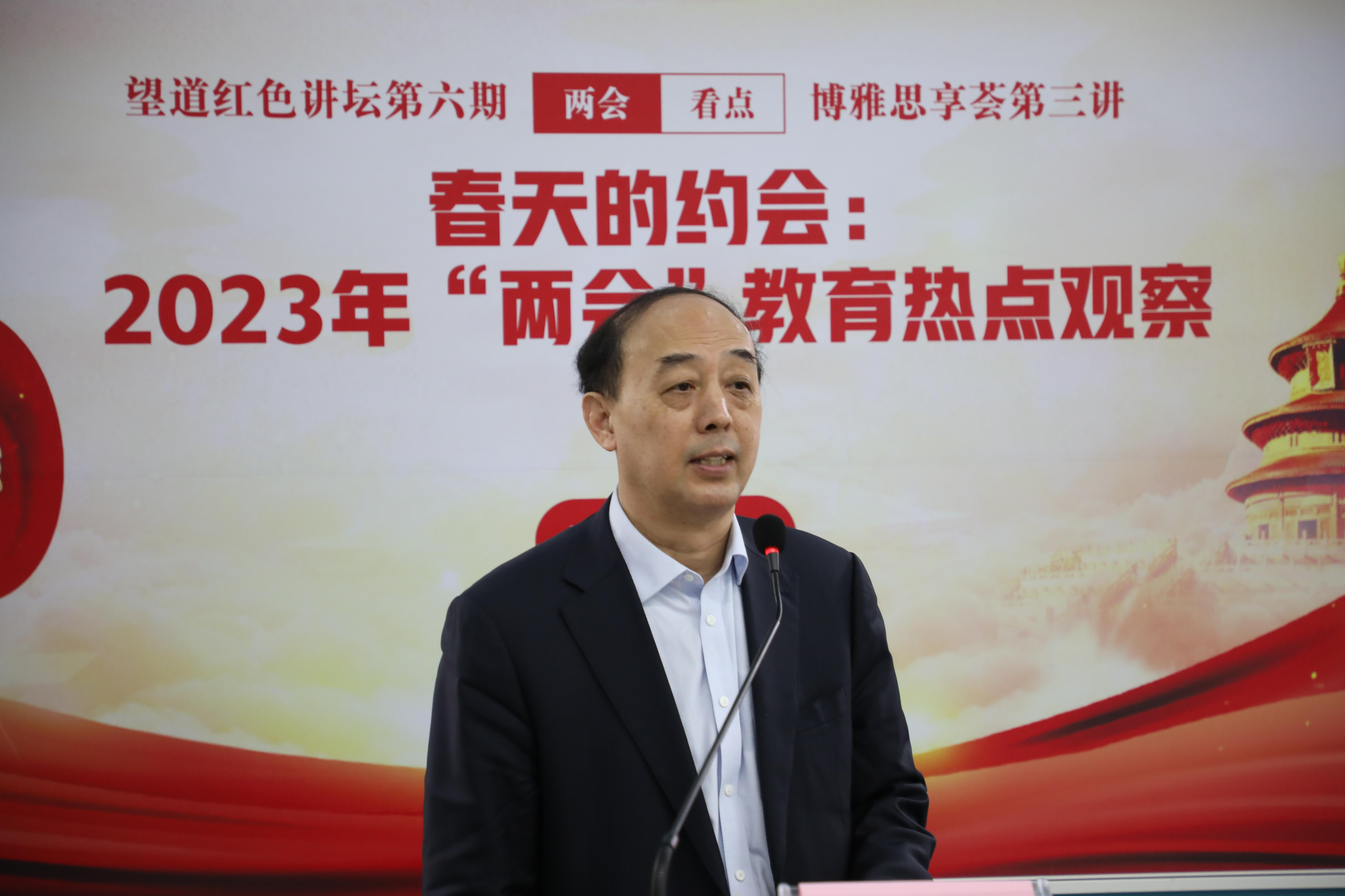 为全面深入学习党的二十大精神和2023年“两会”精神,不断提高师生思想认识,为加快争创“双一流”提供更加有力的思想基础和力量保障,3月22日上午,学院特邀华中师范大学周洪宇教授为天英足球即时比分 师生开展望道红色讲坛第六期暨博雅思享荟第三讲。副校长黄兆信、“沈嫣工作室”骨干成员、党员师生代表参加会议。会议由学院党委书记蒋璐敏主持。