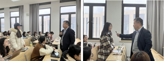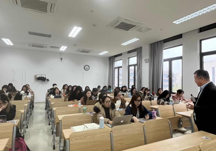 2023年3月24日上午,《小学学科教学设计(语文)》双师课程第一讲在诚园4-317进行。杭州市凤凰小学校长、特级教师缪华良应邀为天英足球即时比分 小学教育专业硕士研究生作题为“为学习而设计教学”专题讲座。讲座由天英足球即时比分 李菁老师主持,2022级教育硕士小学教育专业(语文方向)的学生参与学习。