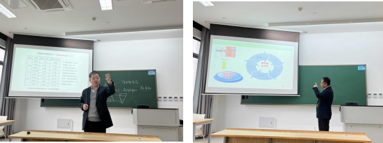 随后,缪校长从目前课程模式转型为切入点,以“为学习而设计教学”为主线作了全面的、多层次的介绍。他从教学与学习的内涵出发,理清影响教学过程的因素,介绍国内国外基本教学范式。缪校长指出目前课程学习与组织方式应发生深刻变革,从“教”的重心转向“学”为中心。同时,缪校长也指出当今世界对于人才要求也发生变化,需要综合化、复合型人才。因此教学要更聚焦学生核心素养发展,倡导“学为中心”的课堂,并从先学后教、多学少教、以学评教三个角度回归课堂的真谛。
