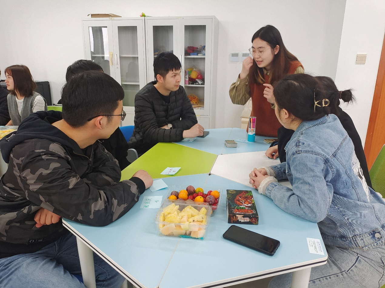 在正式的桌游活动环节,全体参加人员分成小组,由经过训练的研究生带领民警开展了桌游游戏。在轻松愉悦的氛围中,民警和教师、学生就彼此生活中的压力、压力的应对方式进行了交流。