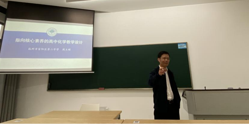 4月19日上午,我校优秀校友、杭州市富阳区第二中学党委书记、校长周玉明老师在杭州师范大学诚园4-114开展主题为《指向核心素养的高中化学教学设计》的讲座。本次讲座由徐土根副教授主持。