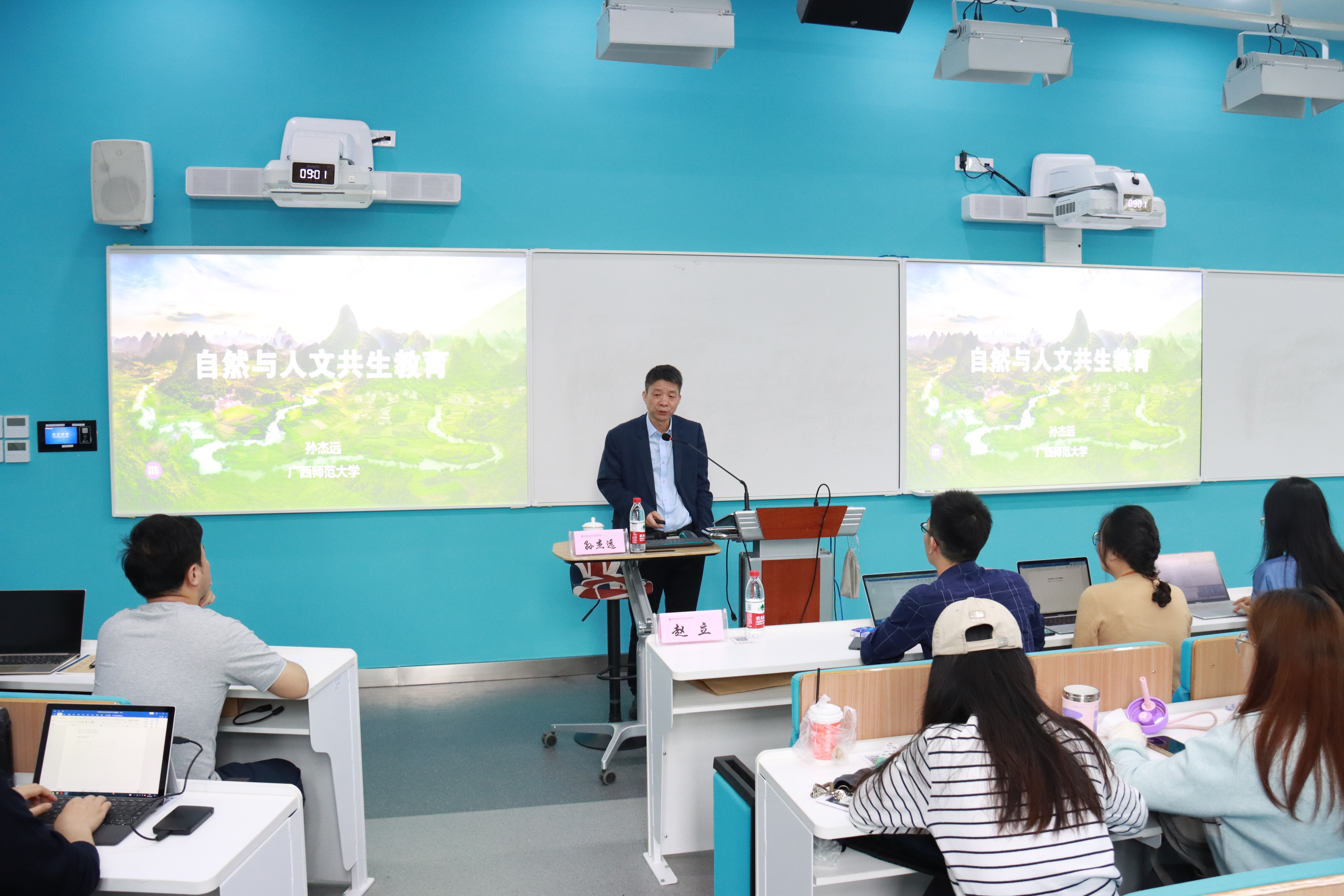 2023年4月20日上午,教育部长江学者特聘教授、广西师范大学副校长孙杰远教授做客太炎教育讲堂,为天英足球即时比分 师生做了题为“走向自然与人文共生的教育”主题讲座。赵立教授主持。