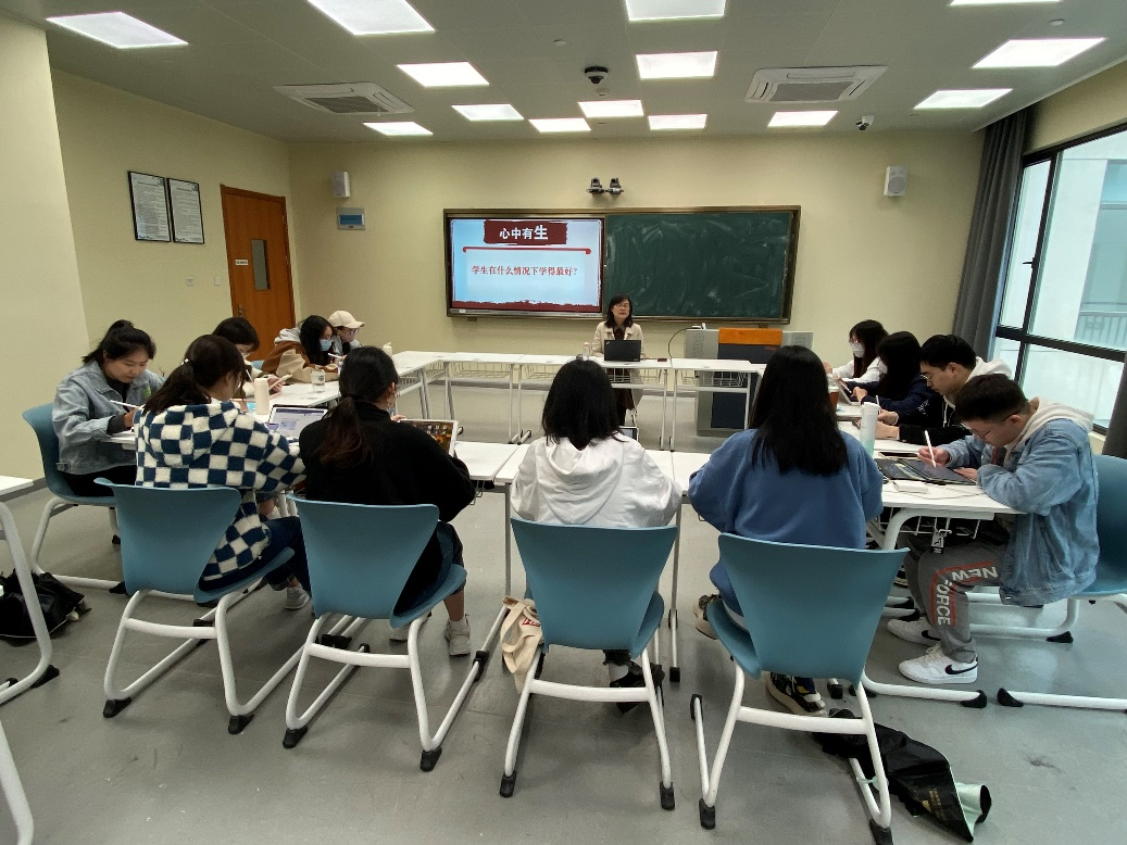 朱老师结合多年从教经历,将优质课堂概括为“四有”,即心中有生,眼中有标,手中有法,胸有情怀。“心中有生”,是指教师在课堂教学设计的时候要以学生为中心,尝试创造一节让学生有兴趣、有挑战的课堂。“眼中有标”,是指教师要充分关注评价目标、教学目标,以及国家、省、市相关教育文件,严格做到“依标施教”。朱老师提醒同学们,未来在走上教师岗位之后,要时刻关注这些内容的变化,以此作为施教的标准。“手中有法”,是指教师在课堂教学过程中要适当采用一些适合学生的教学方法,例如图说课堂、项目化学习、议题式教学、大单元主题学习等,尽可能的锻炼学生的能力。“胸有情怀”,是指教师作为教学工作者,应该要有高尚的教育情怀,努力奋斗,不断提高自己,为我国的教育事业添砖加瓦。