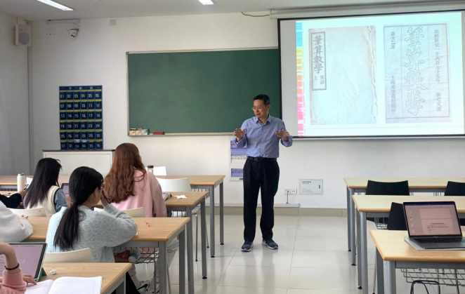 讲座中,邱老师指出教科书是学生教学的文本,是集体智慧的结晶,是时代的反映。邱老师从“百年小学数学教科书的发展”出发,为同学们分享了不同历史时期的数学教科书资料,总结出“百年小学数学教科书的特征”,涉及教科书的编写、标准、使用、编写者及功能等。邱老师提出教科书的发展不仅承载着各个时代的烙印,而且是打开旧时记忆的闸门,更是时代发展的阶梯,作为教育者,我们要从教科书的本质出发,传承红色根脉,从真正意义上做到立德树人。邱老师还结合当前小学数学教学实践,提出了一些有效使用数学教科书的建议。