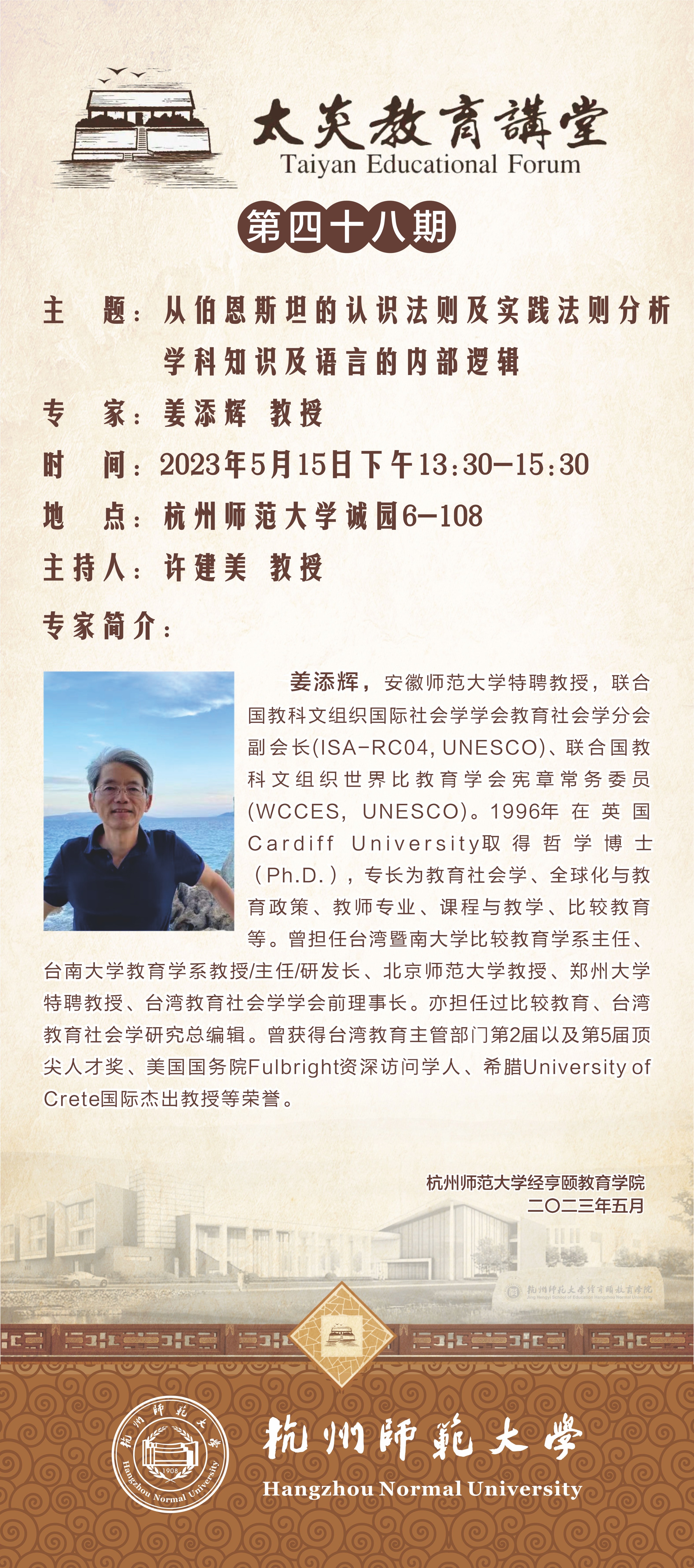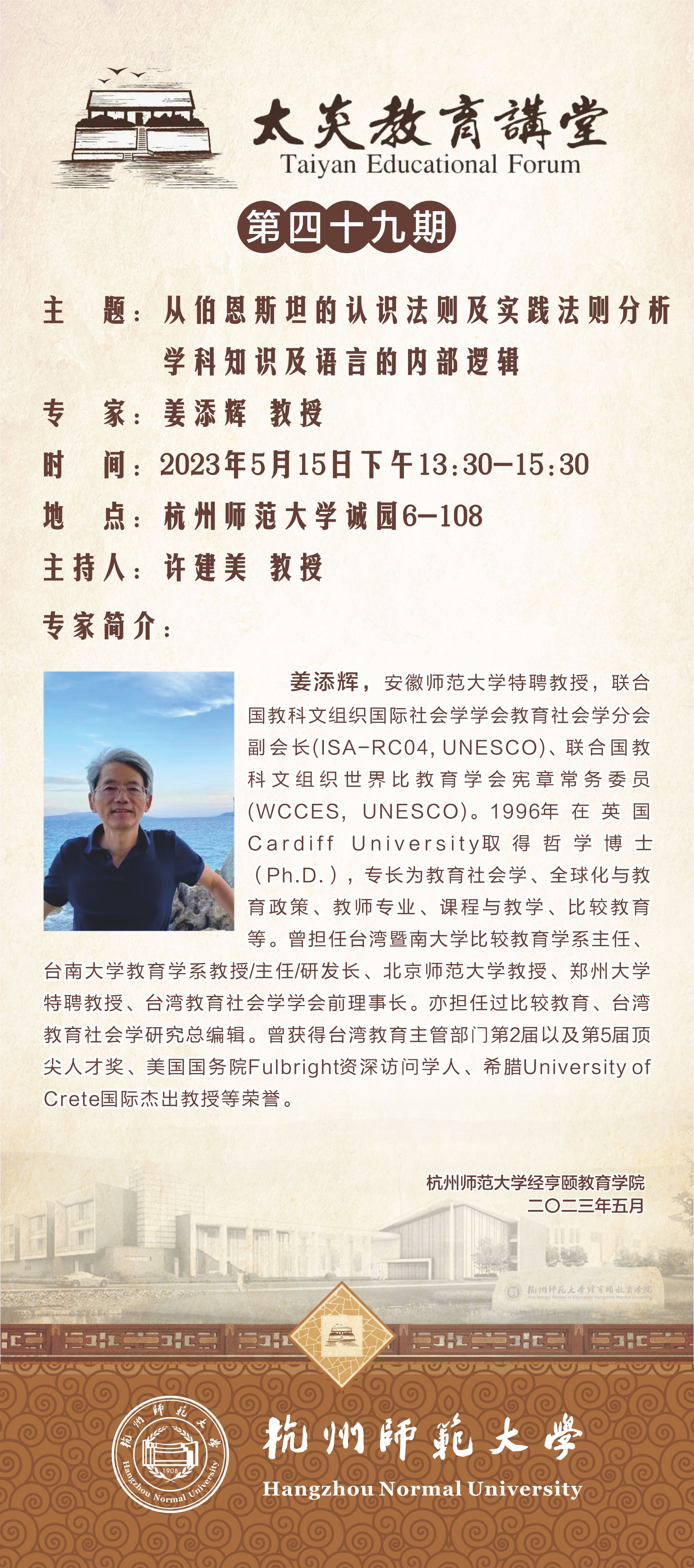 地点:杭州师范大学诚园6-108