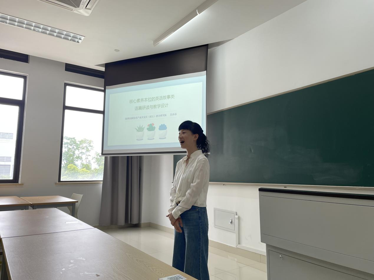 讲座伊始,吴老师向同学们阐明了选择本次讲座主题的缘由。相较于其他类型的语篇,故事类语篇往往是不太容易把握,也是大多数新手教师最容易犯难的一个语篇类型,为此吴老师特意选择该语篇类型,与同学们交流分享,希望同学们能通过本次讲座,了解故事类语篇的研读方法和教学设计的路径。接着,吴老师带领同学们层层剥离故事类语篇的文体特征,以她自己所上的初中英语人教版八年级下册Unit 6中Hansel and Gretel这一语篇为例,从Setting、Plot、Characterization和Theme四个维度带领同学们深入分析了故事类语篇文本,提炼核心概念,挖掘主题思想。其间,吴老师还分享许多个人在教学和从教过程中发生许多有趣经历,讲座氛围十分活跃。
