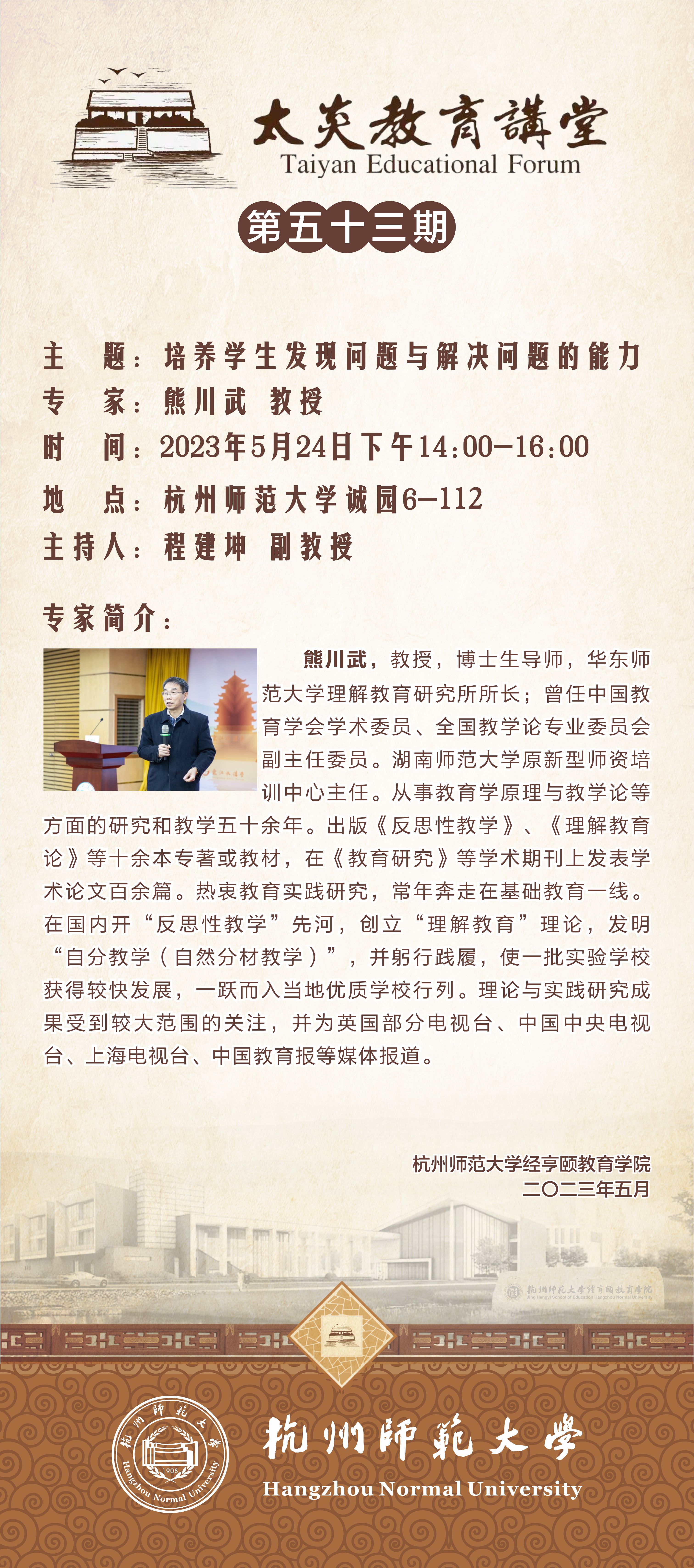 地点:杭州师范大学诚园6-112