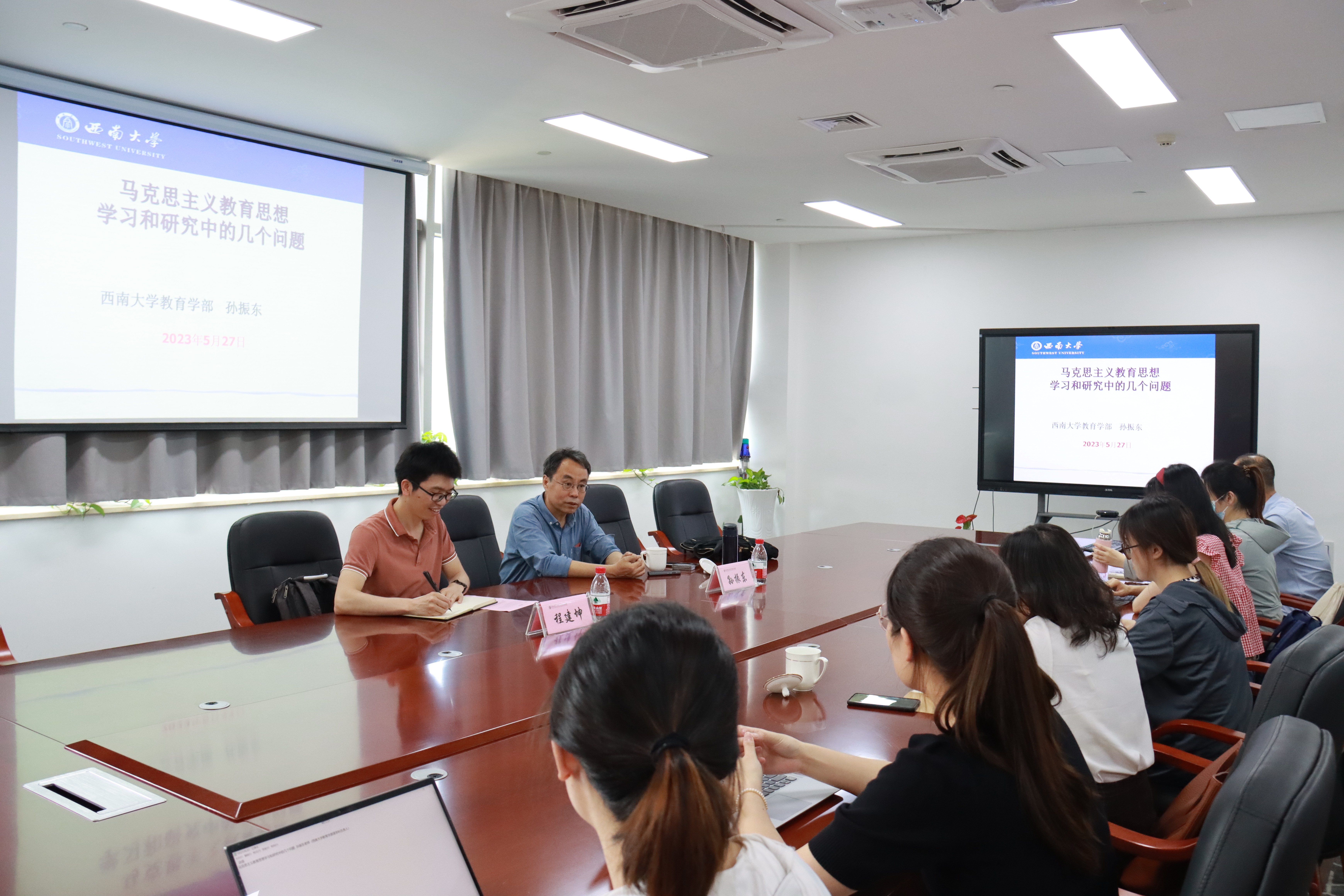 2023年6月2日下午,西南大学孙振东教授做客太炎教育讲堂,为天英足球即时比分 师生做题为“加强马克思教育思想学习和研究的几个问题”的讲座。本次讲座由程建坤副教授主持,学院30余名师生参加了本次讲座。