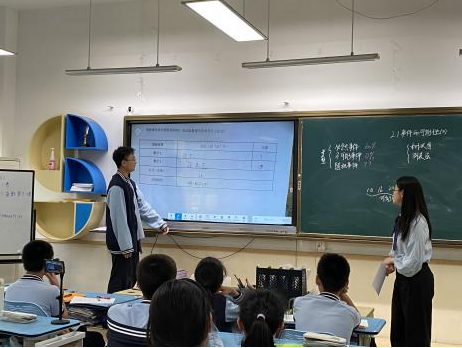 五月是我院团队的教学技能展示月,我们交流了三个月以来积累的教学实践经验,进行团队内外的同课异构。团队成员张芳铭与浙江大学的实习教师傅婵娟就《条形统计图和折线统计图》开展同课异构,团队成员余丽丽、田荣飞、陆颖涛就《事件的可能性(2)》开展同课异构,各年级数学组教师和部分校领导参与了听课与评课。在课后研讨中,保俶塔申花实验学校的金戈校长对团队的整体师范生技能水平给予了良好评价,各指导教师也对团队成员在这一阶段内的成长表示肯定,赞赏我团队“肯干、能干、肯学、能学”的优良作风。