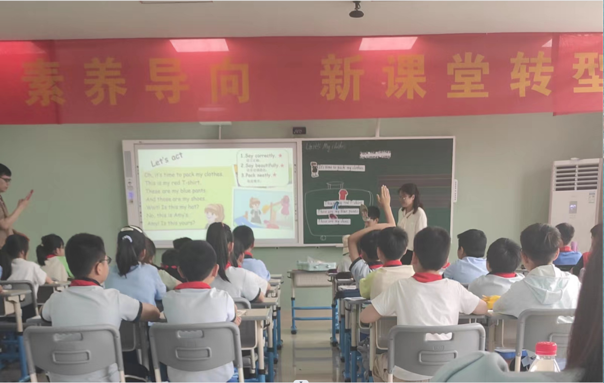 第一节课由赖丽丹老师授课,讲解内容为四年级下册Unit5 B Read and write板块。赖老师遵循Pre-reading、While-reading and Post-reading教学模式,以参加夏令营、整理衣物这一与学生生活密切相关的情境,展开本节课的教学。赖老师在整节课中,始终围绕情境,让学生在情境中学习、理解和运用语言,体现了赖老师的语篇意识,并且不断渗透单元主题,让学生学会整理衣物,学生能够把课堂中所学的知识运用到生活中,体现英语学科的核心素养。