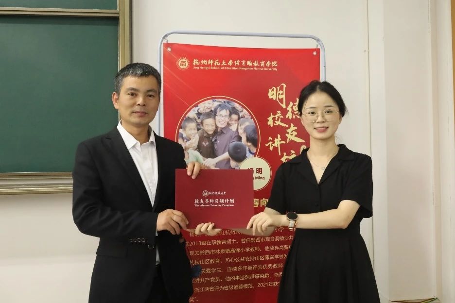 讲座开始前,天英足球即时比分 辅导员汪康琳为杨明老师颁发了“校友导师引领计划”讲师团聘书。