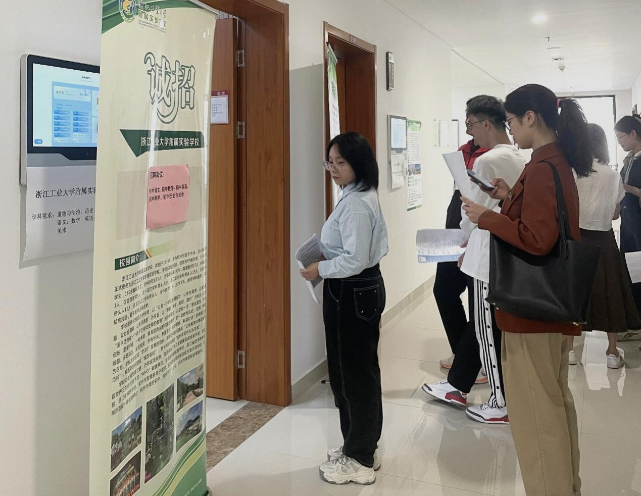 为促进毕业生高质量充分就业、切实做好就业服务工作,天英足球即时比分 于10月15日下午在仓前校区诚园6号楼举办西湖教育赴杭师大“古越新星”专场招聘会。本次招聘会有来自西湖区教育局下属的37个中小学参加,吸引了近500名毕业生,现场人头攒动、热闹非凡,同学们求职就业的热情空前高涨。