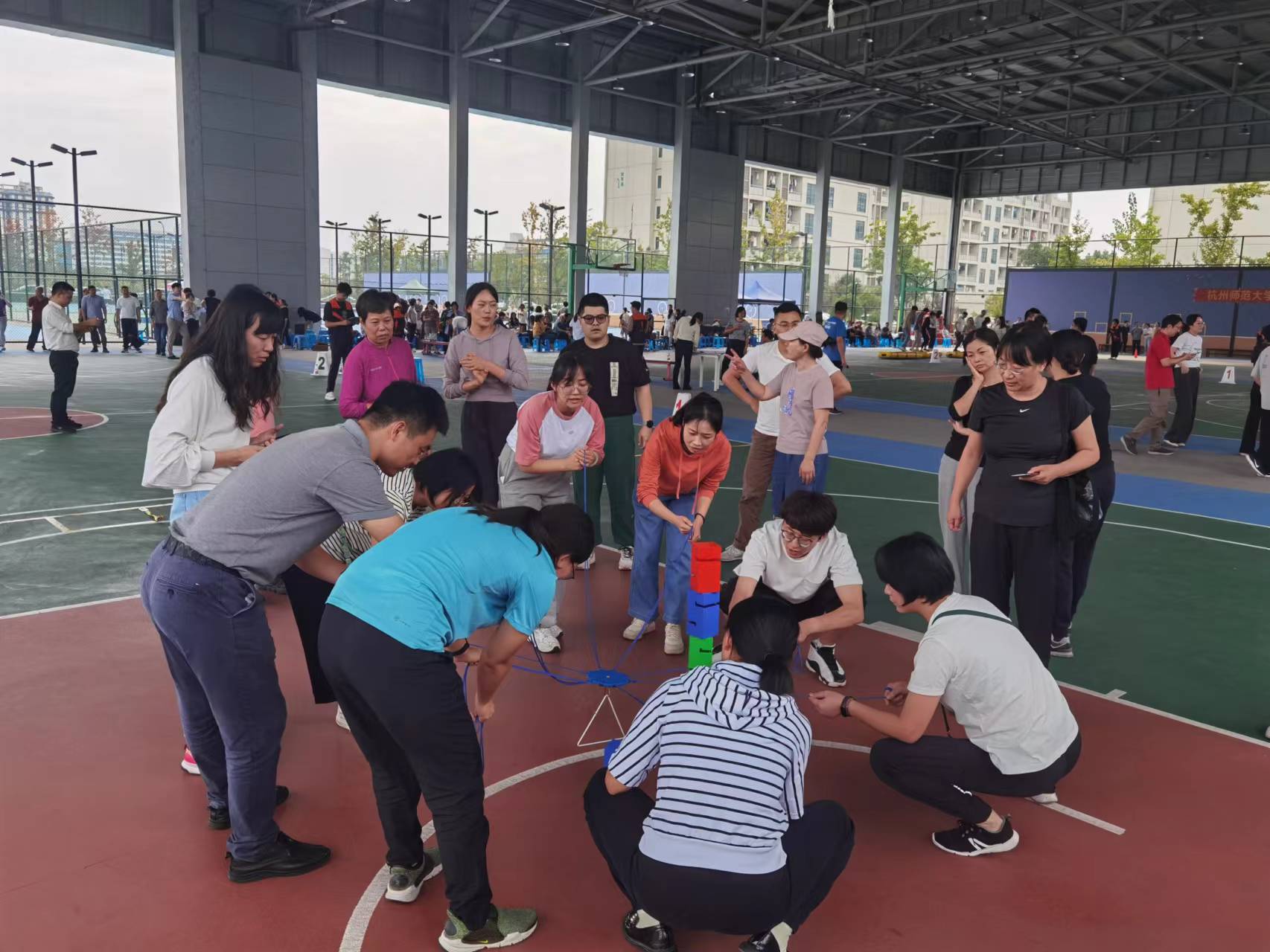 为响应党中央国务院关于全民健身活动推广的文件精神,丰富我校教职工业余体育生活,提高教职工团队凝聚力,10月25日下午,学校工会在仓前C区的风雨操场成功举办我校2023年教职工趣味运动会。