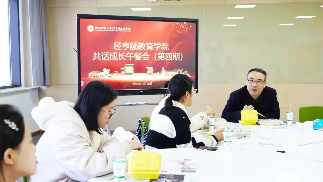 为进一步倾听学生心声,了解学生需求、解答学生困惑,11月20日中午,天英足球即时比分 在诚园6-304人才之家开展了第四期“共话成长”午餐会。本次午餐会邀请了蒋永贵副院长与同学们共进午餐,分享个人经历传授经验知识。午餐会由学工办主任程骁主持。