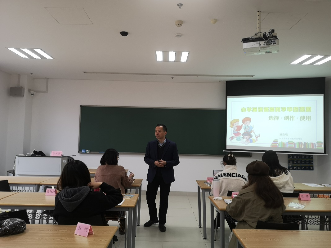 11月16日,桐乡市教师进修学校小学英语教研员凌应强老师带来了《小学英语语篇教学中资源选择·创作·使用》的专题讲座。凌老师深入解读了语篇的三要素和资源的概念,解析了语篇和资源的关系,系统阐述了小学英语语篇教学资源的来源、功能、形式等。凌老师强调了资源在语篇教学中的功能与价值,分享了增知性词汇资源的利用原则、绘本资源的利用原则、非连续文本资源的引入原则、文本资源的创编原则等资源使用原则,并提出了一系列常态课中语篇教学中的资源利用建议。