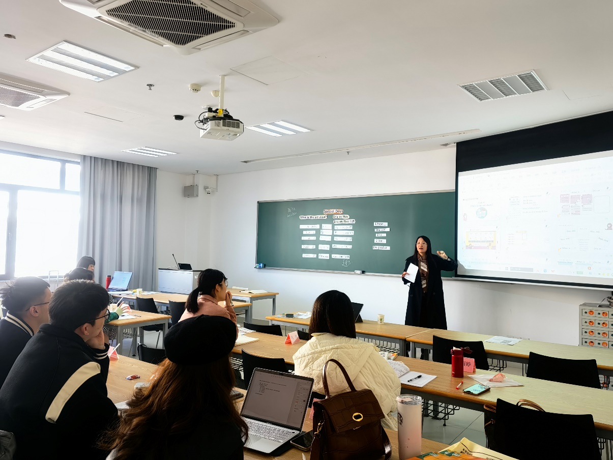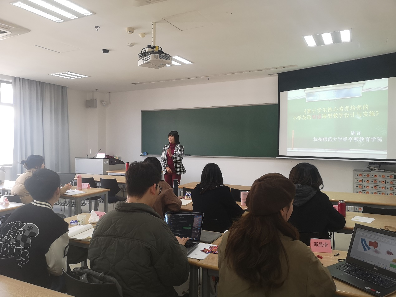 11月18日,上城区教育研究院小学英语教研员徐蔚老师带来了给学员讲授了《基于语篇的PEP教材对话课型教学模拟实践与指导》《基于语篇的PEP教材读写课型教学模拟实践与指导》。参加培训学员,沈书鑫、徐铭康、邵晨倩、俞圆老师分别开展了试教课程,徐蔚老师和周瓦教授现场点评、改课,带来了新的理念,强调了在真实语境中创造富有变化的语篇的重要性,这不仅激发了学员们的教学创新思维,也为他们提供了实用的教学策略。