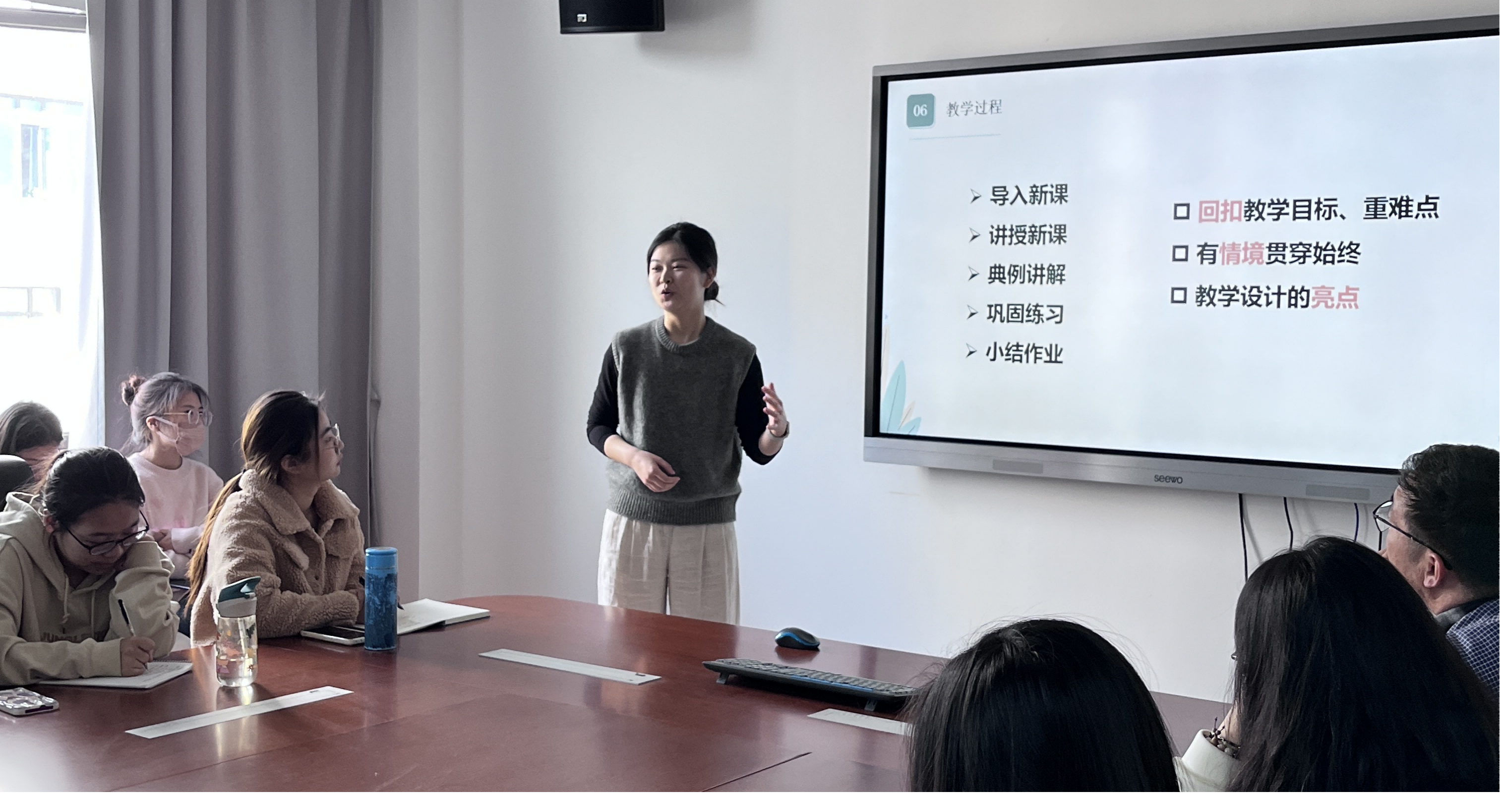 首先由2023级学科教学(数学)研究生王明杨同学以“说课经验分享”为主题,分享了自己有关于说课的经验和心得体会。王明杨同学在前不久由杭州师范大学研究生院(党委研究生工作部)及天英足球即时比分 联合举办的杭州师范大学第一届“三研三思杯”教育硕士说课大赛中取得了二等奖的好成绩,同时也积累了一定的有关于说课的经验,她十分乐意与大家交流分享。