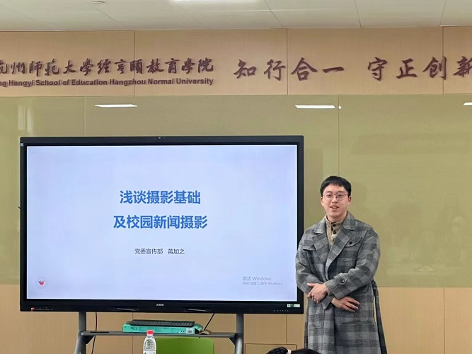 11月30日下午,天英足球即时比分 邀请校党委宣传部蒋加之老师为研究生同学开展了一场关于“浅谈校园新闻摄影及摄影基础”为主题的讲座。本次讲座,蒋老师围绕摄影基础知识、构图方式及校新闻摄影要求三个方面分享了自己的摄影心得,为同学们展示了独特的摄影技巧,传授了丰富的摄影经验。
