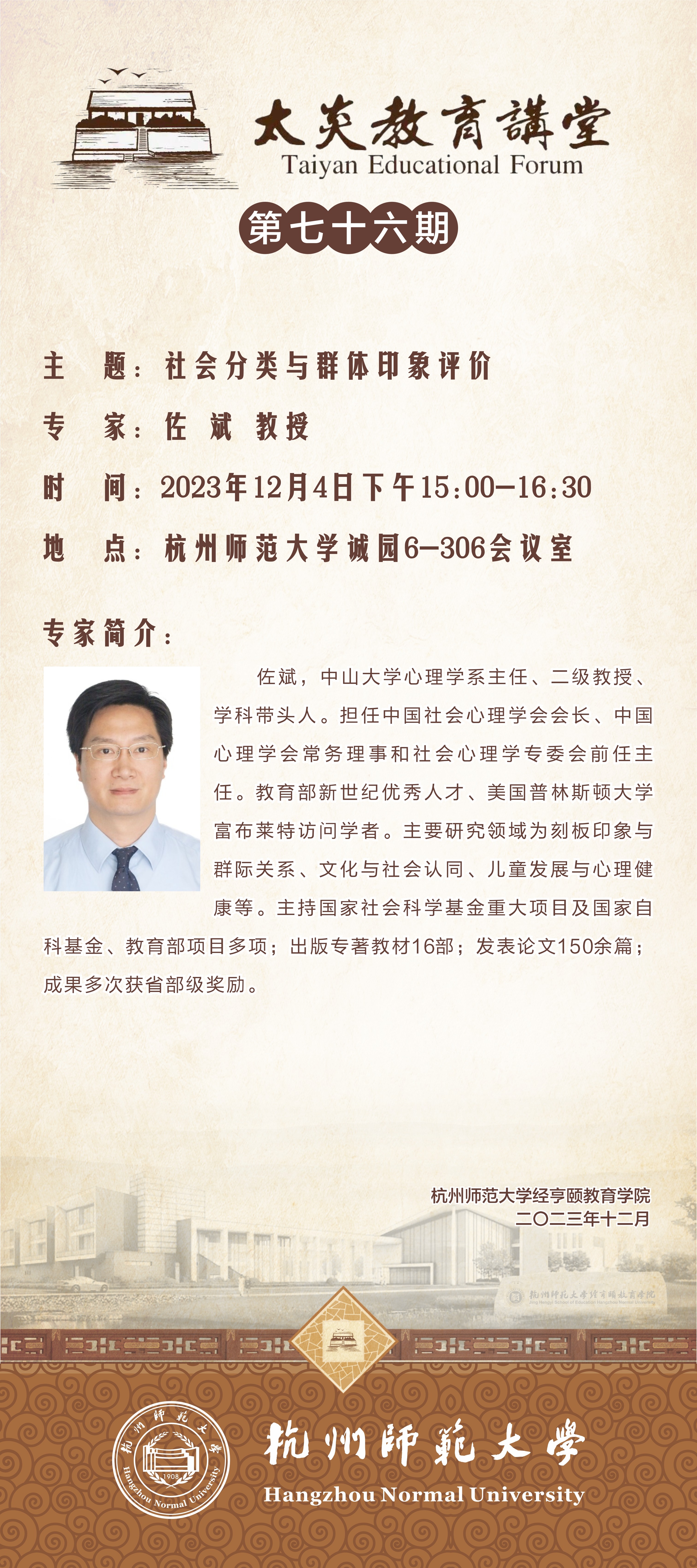 佐斌,中山大学心理学系主任、二级教授、学科带头人。担任中国社会心理学会会长、中国心理学会常务理事和社会心理学专委会前任主任。教育部新世纪优秀人才、美国普林斯顿大学富布莱特访问学者。主要研究领域为刻板印象与群际关系、文化与社会认同、儿童发展与心理健康等。主持国家社会科学基金重大项目及国家自科基金、教育部项目多项;出版专著教材16部;发表论文150余篇;成果多次获省部级奖励。